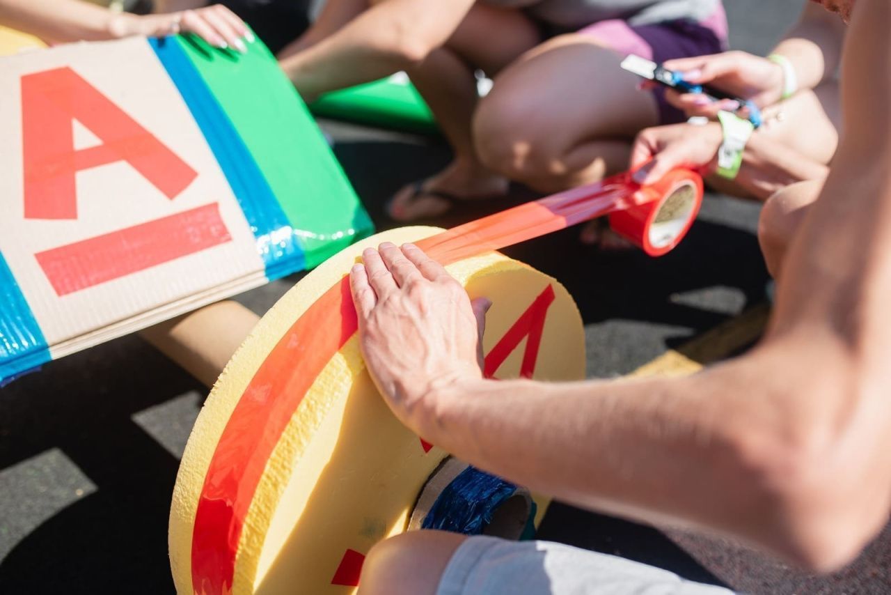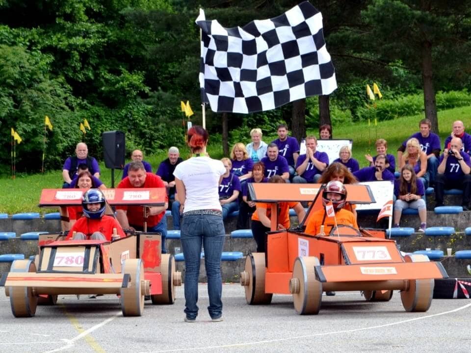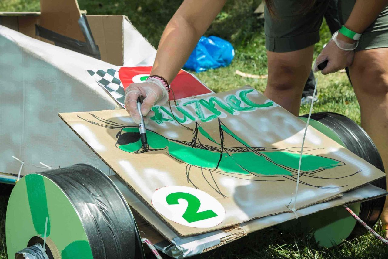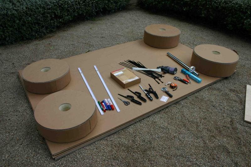 Участники получают необходимый реквизит для моделирования будущего спортивного автомобиля. Теперь болид нужно собрать таким образом, чтобы он мог катиться и выдерживал бы вес одного участника. В помощь смекалка, находчивость и умелые руки.