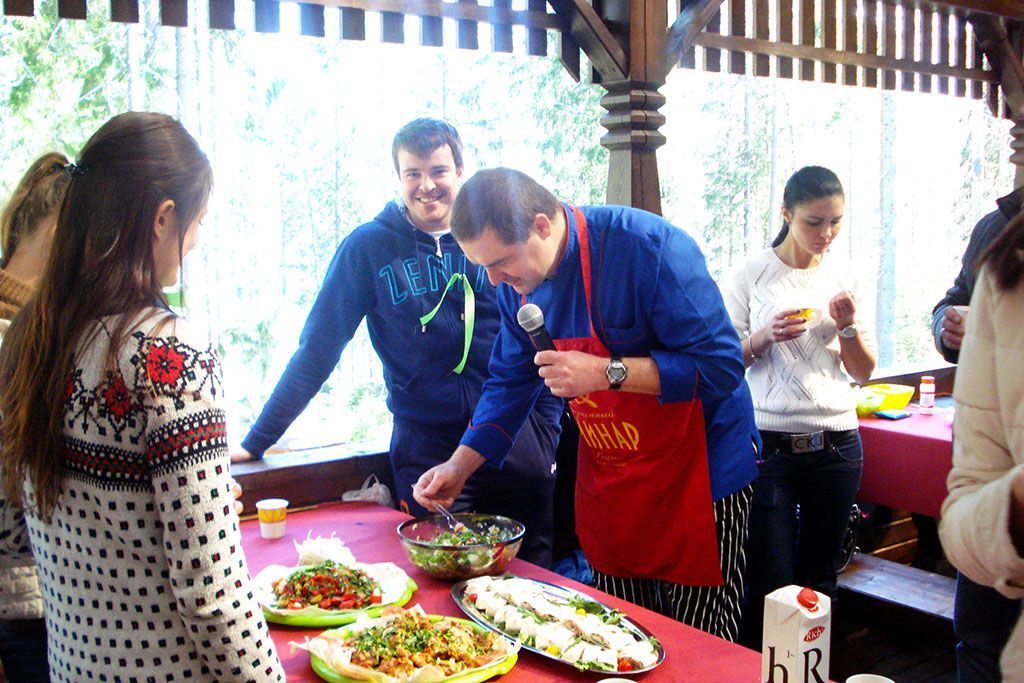 Кулинарный Тимбилдинг - трехчасовая командная игра, по правилам которой участники совместно с шеф-поварами работают над приготовлением оригинальных блюд по одной из мировых кухонь.